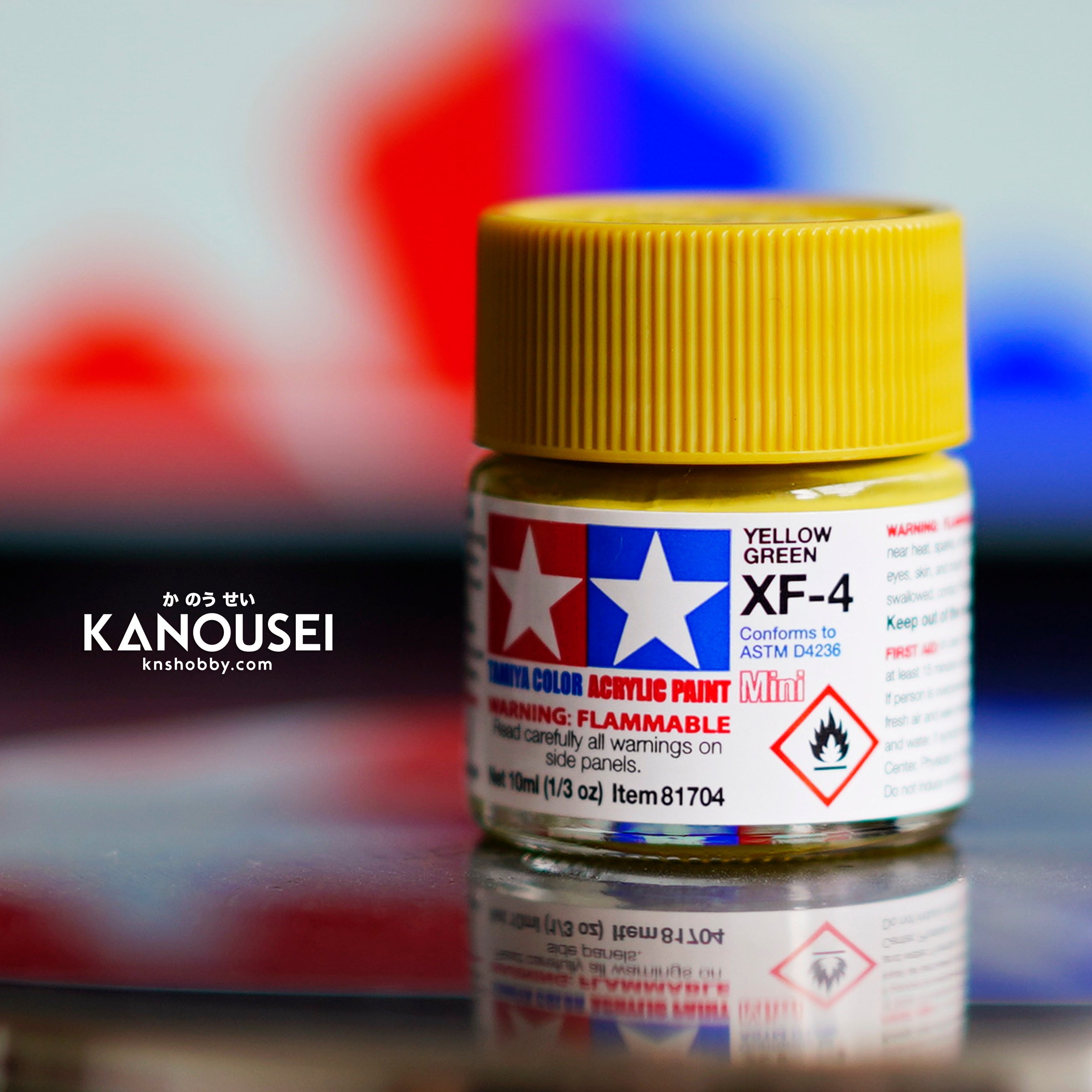 ABOUT TAMIYA XF-PAINT SERIES Tamiya Acrylic Paints are made from water-soluble acrylic resins and are excellent for either brush or spray painting. These paints can be used on styrol resins, styrofoam, wood, plus all of the common model plastics. The paint covers well, flows smoothly with no blushing or fading, and can be blended easily. Each bottle of the Tamiya Acrylic Paint Mini Series contains 10 ml of paint.